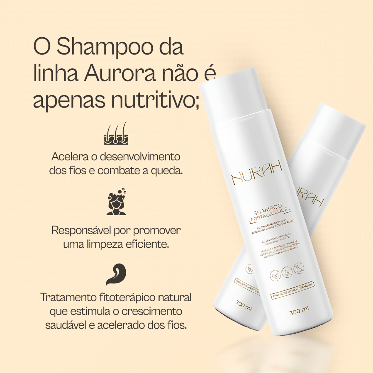 Formulado com ativos naturais, o Shampoo da Linha Aurora limpa suavemente sem ressecar, preparando os fios para uma rotina de tratamento completa.